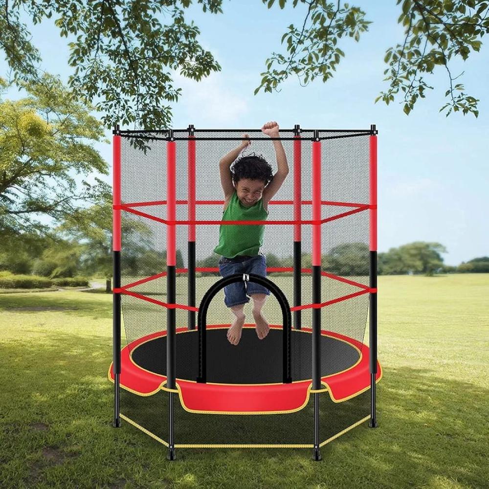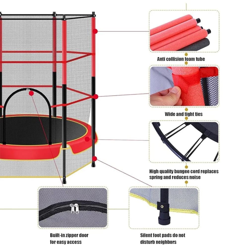 استمتع بوقت لعب آمن وممتع مع ترامبولين نطاط داخلي عالي التحمل 5.5 قدم، مزود بشبكة أمان لضمان قفزات مريحة للأطفال من 3 إلى 6 سنوات.