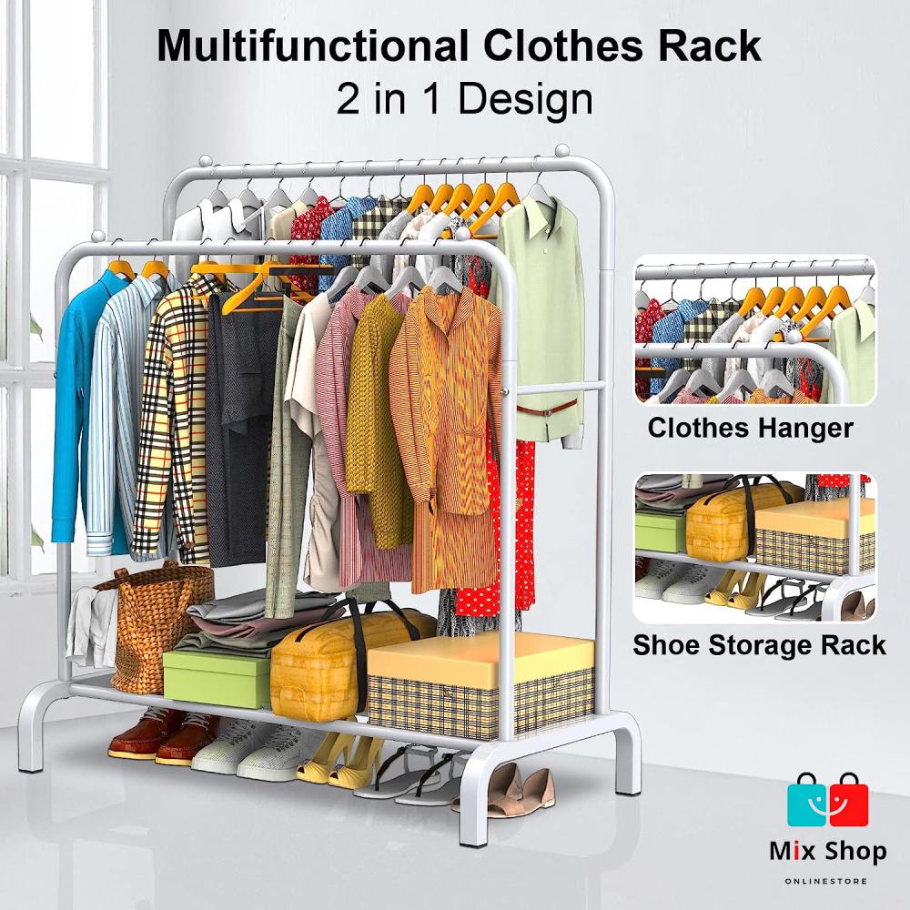 يأتي حامل الملابس المزدوج بتصميم عملي وعصري يوفر لك راحة أكبر في حياتك اليومية. يمكنك استخدامه لعرض ملابسك في غرفة النوم لتسهيل اختيار ملابسك اليومية بشكل أكثر سهولة.