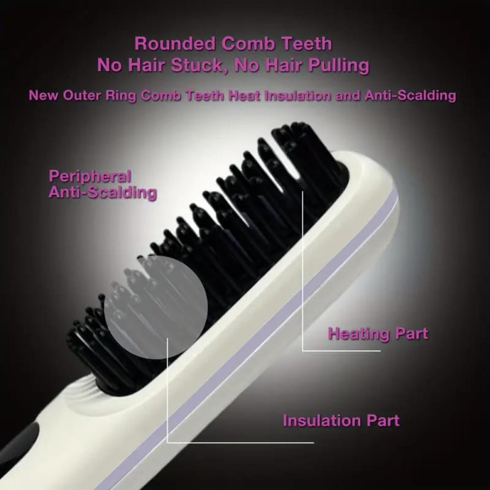 بفضل تصميمه اللاسلكي، يمكنك استخدام المشط بحرية دون القلق من تشابك الأسلاك أو القيود التي تفرضها المقابس الكهربائية.