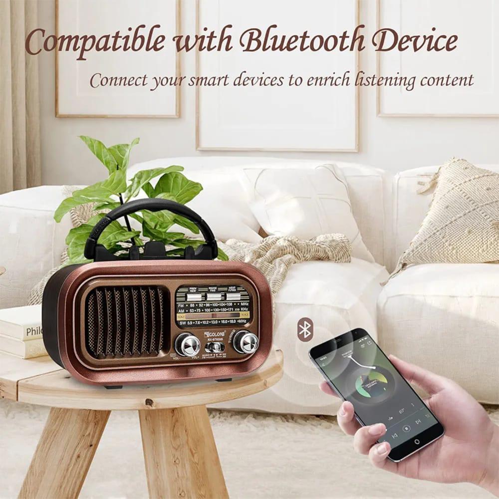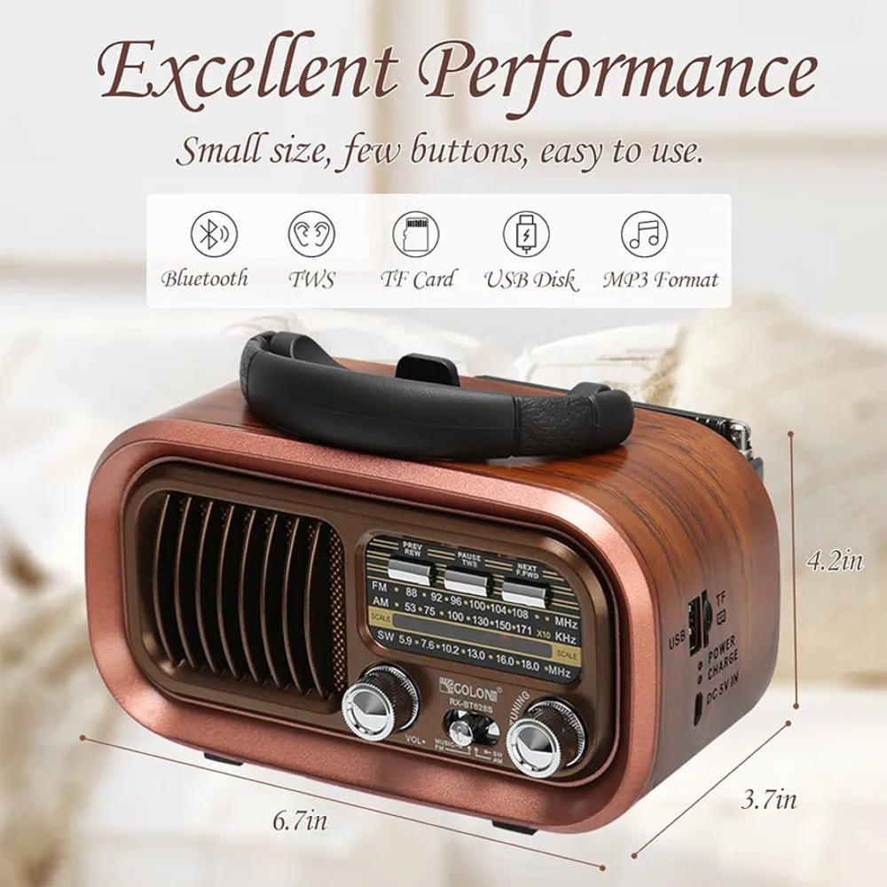 استمتع بصوت نقي ومميز أينما كنت مع راديو DENX DX2449 المحمول، بتقنية بلوتوث، تشغيل USB/TF، وألواح شمسية للشحن في أي وقت وأي مكان.
