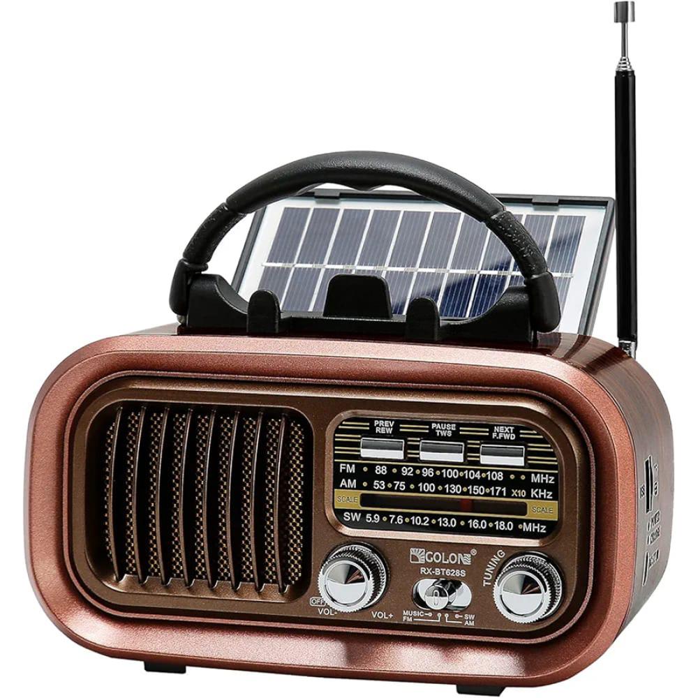 جهاز راديوراديو بلوتوث محمول DENX DX2449 بألواح شمسية وتشغيل USB وTF عالي الجودة