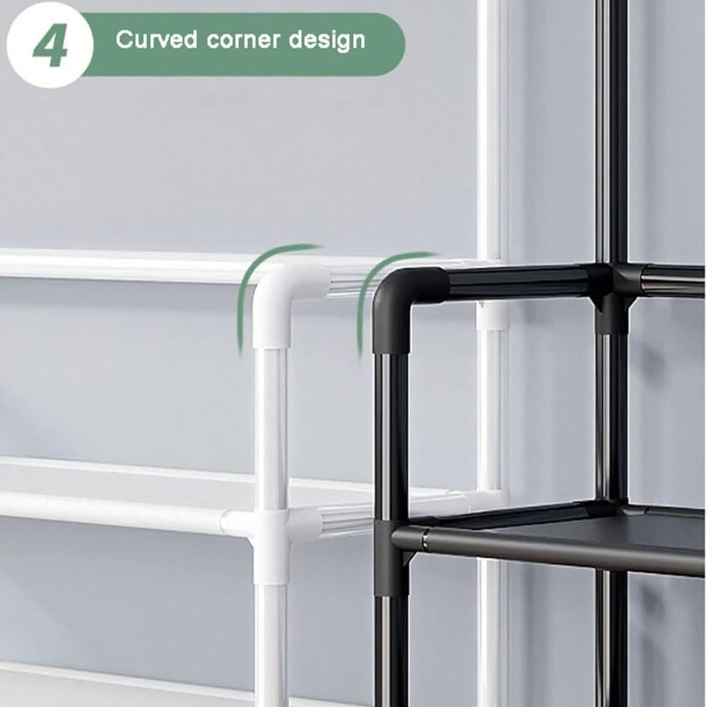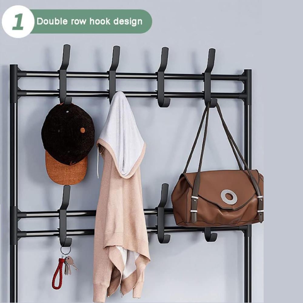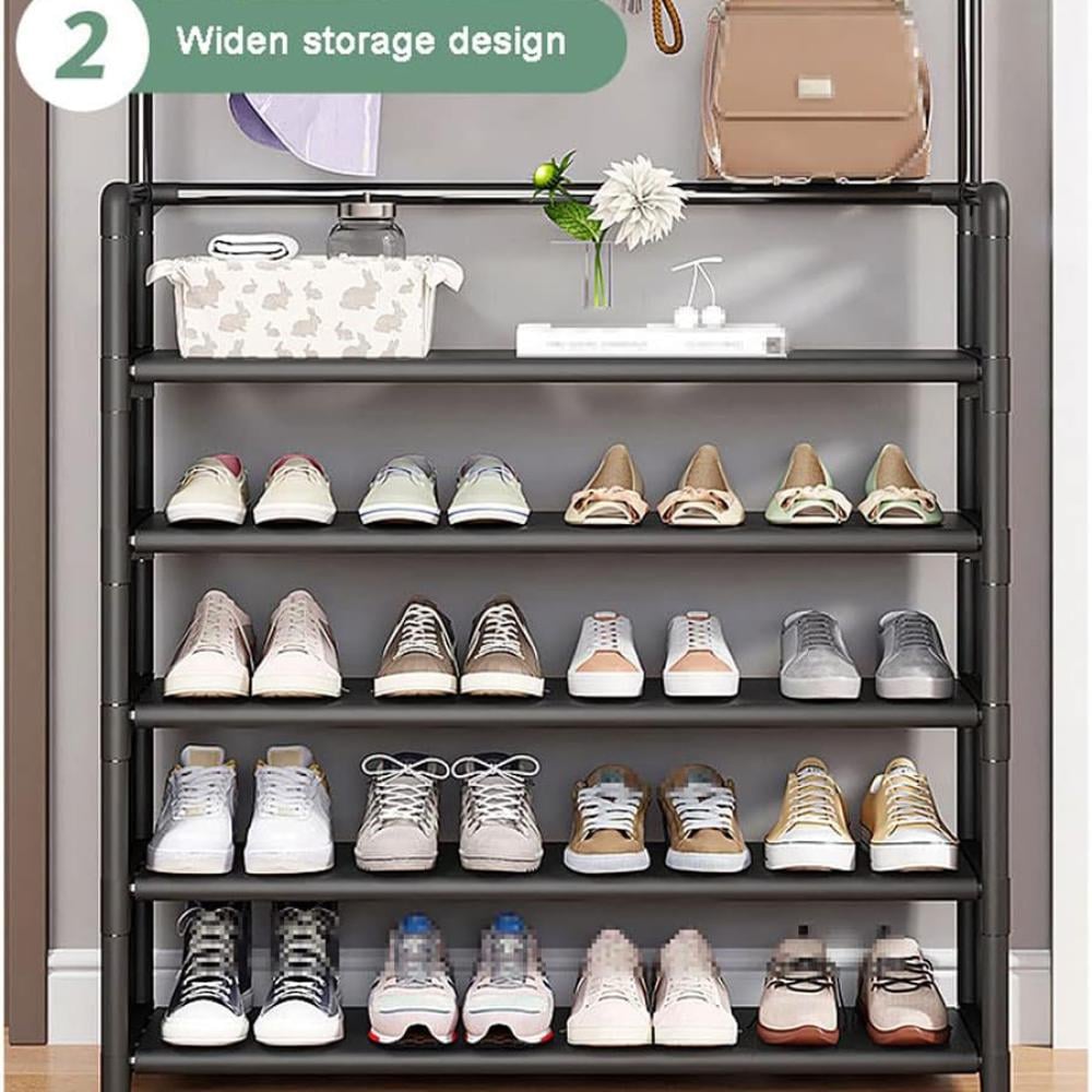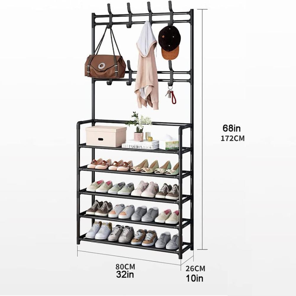 سعة التخزين: خمس طبقات للأحذية مع خطافات متعددة لتعليق الملابس والقبعات والإكسسوارات، لتلبية احتياجات التخزين للعائلة بأكملها.