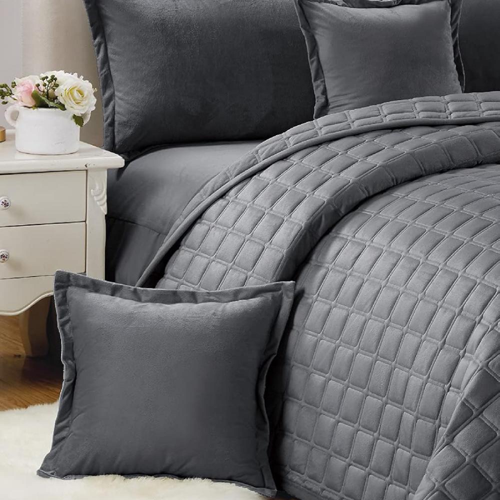 طقم لحاف مضغوط مايكروفايبر مكون من 4 قطع من Moon (رمادي)