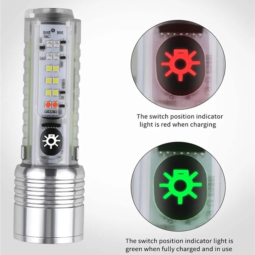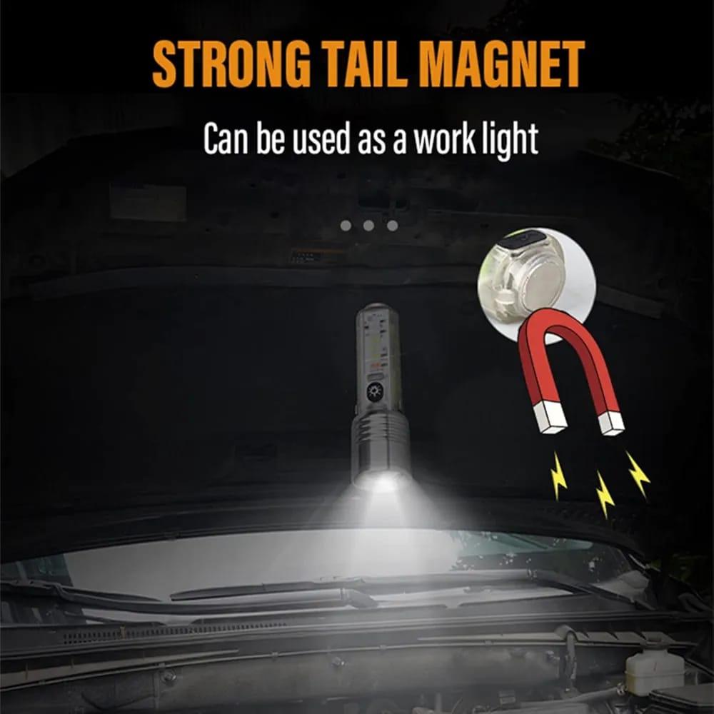- الكشاف يتميز بتصميمه المدمج والخفيف، مما يجعله سهل الحمل والاستخدام لفترات طويلة دون تعب. كما أنه مزود بمشبك للقلم لتثبيته بسهولة، وحبل في الجزء الخلفي لزيادة الراحة أثناء حمله. إضافة إلى ذلك، يحتوي الكشاف على تصميم مغناطيسي في الجزء العلوي يتيح لك تثبيته على الأسطح المعدنية لاستخدامه كمصباح عمل يتيح حرية اليدين.