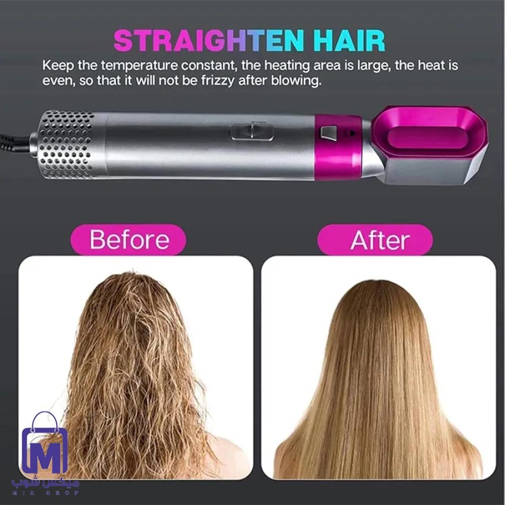 تمتعي بتصفيف احترافي لشعرك مع مجفف الشعر 5 × 1 بقدرة 1000 واط، حماية من الكهرباء الساكنة و4 ملحقات تمنحك نعومة وتجعيد مثالي بسهولة في المنزل.