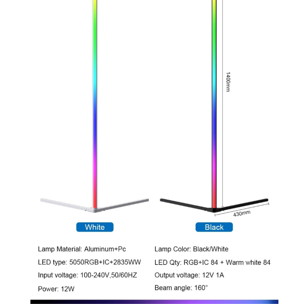 ● يأتي مصباح الزاوية الذكي هذا مع تقنية البلوتوث لمزامنة الإضاءة مع الموسيقى المفضلة لديك. ستتفاعل الإضاءة بشكل جذاب مع لحن وإيقاع الموسيقى، مما يوفر تجربة بصرية وسمعية مثيرة.