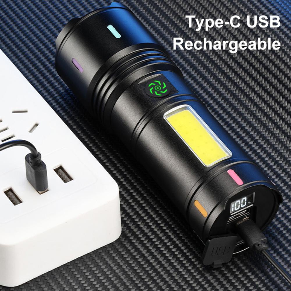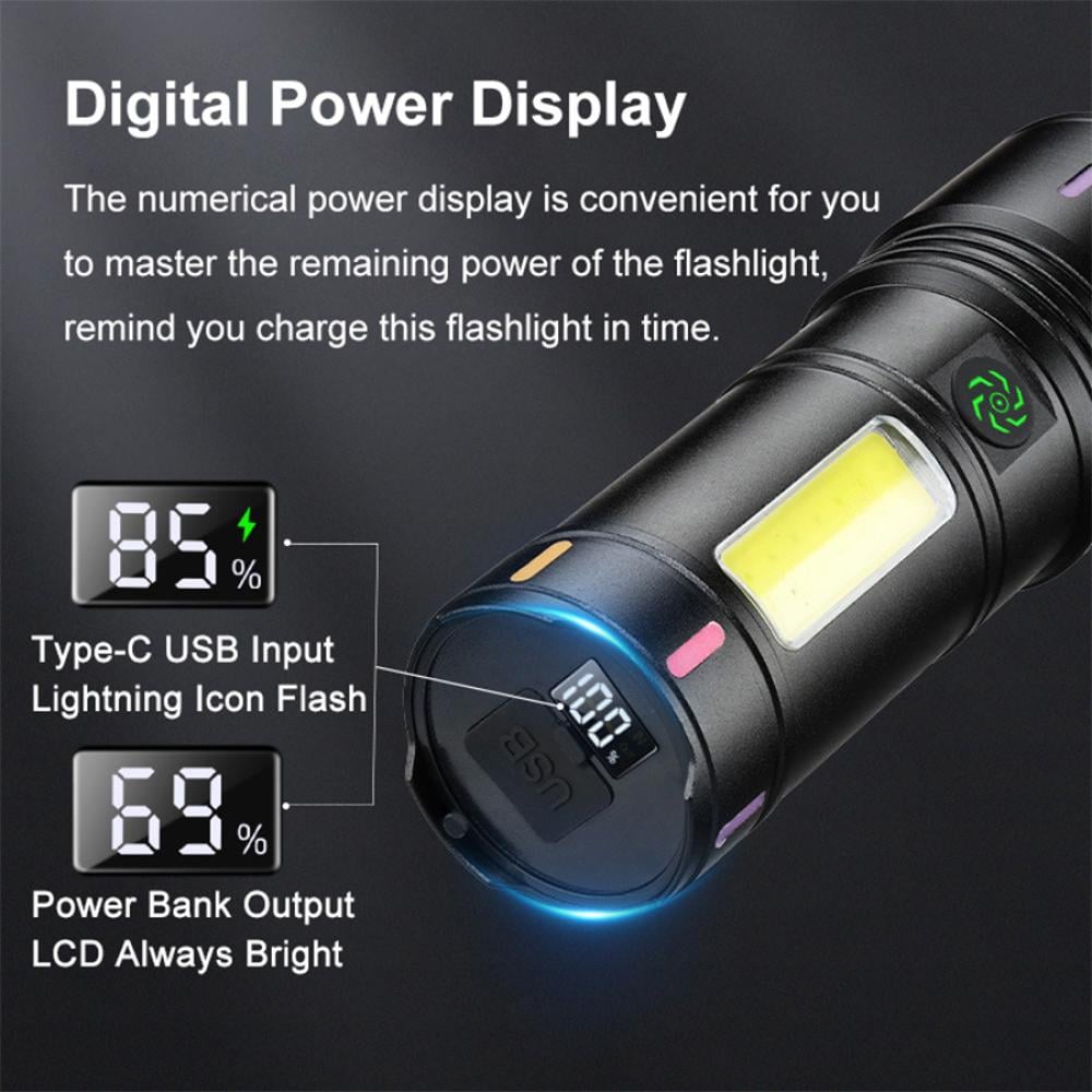 مصباح يدوي AB Wakeel B-706 قابل للشحن بإضاءة قوية TG + COB ومدى 2000 متر
